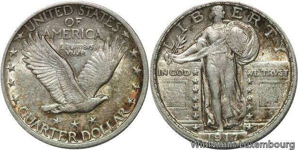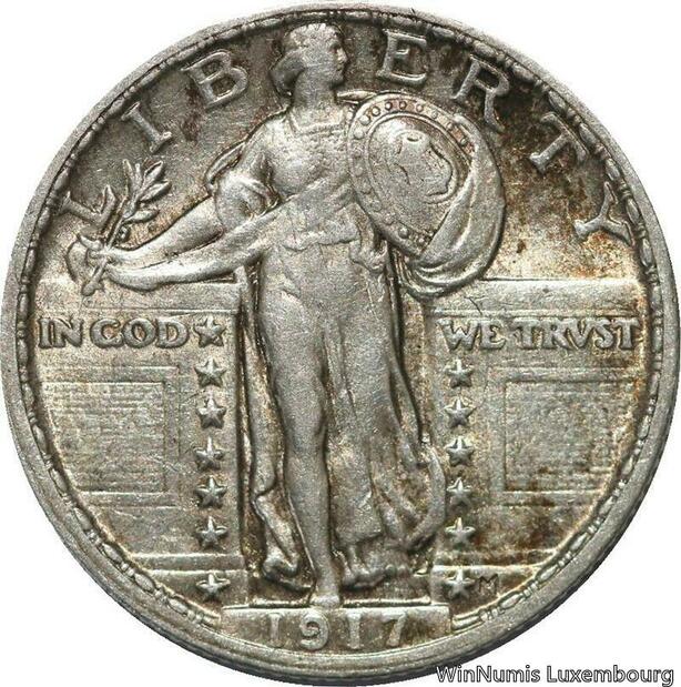 R6625 Rare United States Quarter Dollar Standing Liberty 1917 type 2 Silver AU