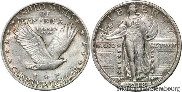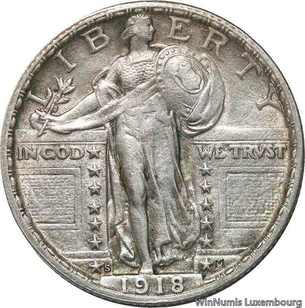 R6627 Rare United States Quarter Dollar Liberty 1918 S San Francisco Silver AU