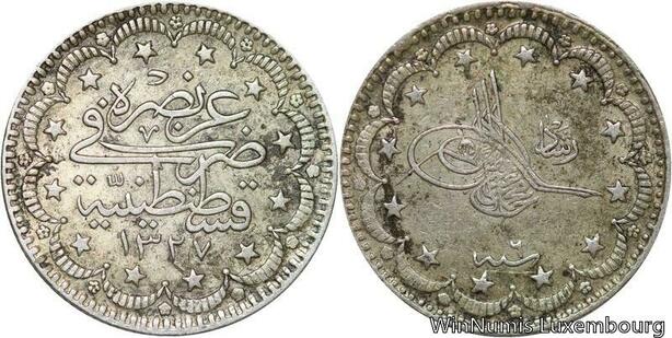 R6683 Ottoman Empire Turkey 5 Kurush Muhammad V 1327 /2 1910 Silver --> M offer