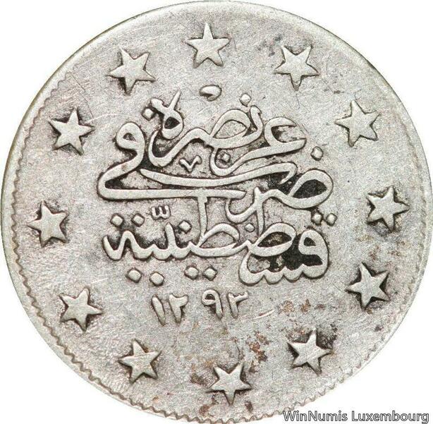 R6685 Ottoman Empire Turkey 2 Kurush Abdul Hamid II AH 1293 /23 1898 Silver