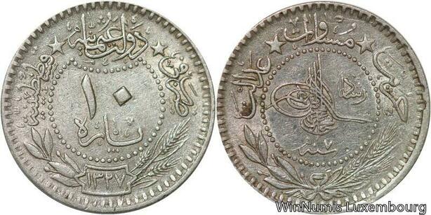 R6693 Ottoman Empire Turkey 10 Para Muhammad V Reshat AH 1327 /7 1915 -> M offer