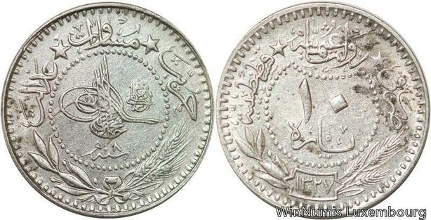 R6695 Ottoman Empire Turkey 10 Para Muhammad V El Ghazi AH 1327 /8 1916 -->Offer