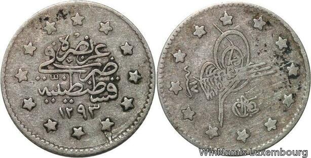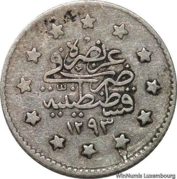 R6715 Ottoman Empire Turkey 1 Kurush Abdul Hamid II AH 1293 /17 1892 Silver