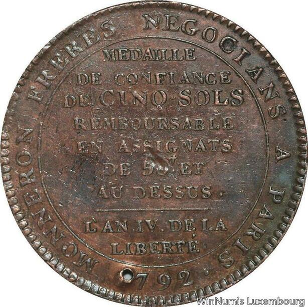 R6747 Constitution Monneron 5 Sols Serment an IV 1792 Birmingham -> Make offer