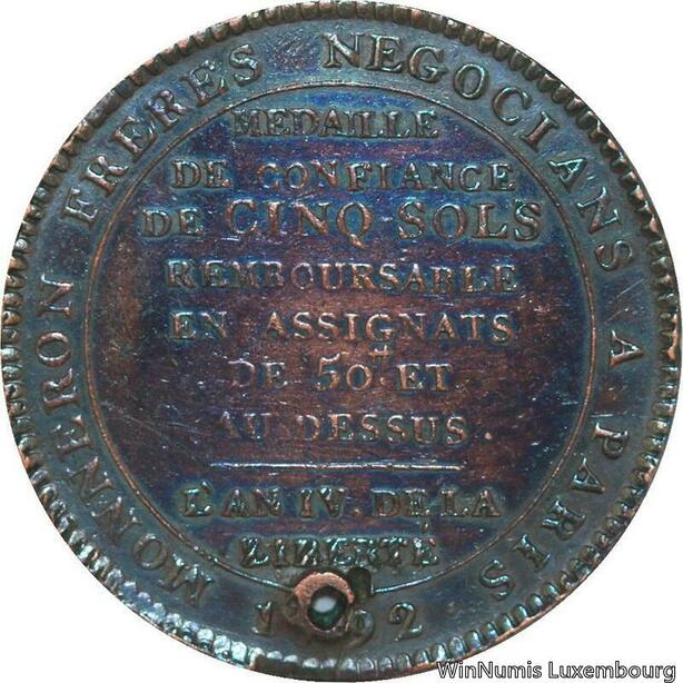R6750 Constitution Monneron 5 Sols Serment an IV 1792 Birmingham -> Make offer