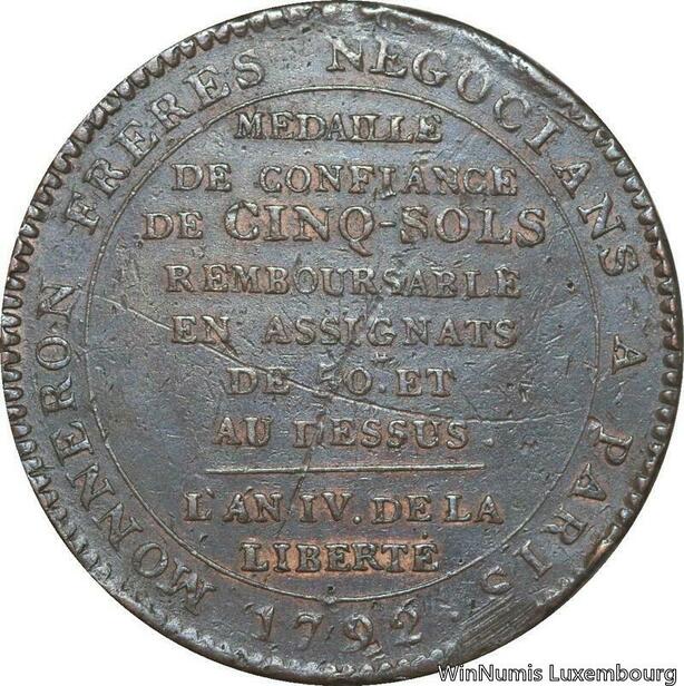 R6754 Constitution Monneron 5 Sols Serment an IV 1792 Birmingham -> Make offer