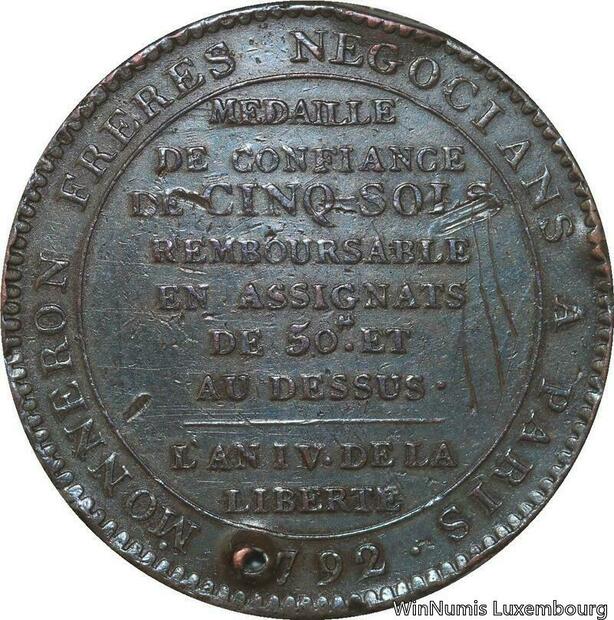 R6756 Constitution Monneron 5 Sols Serment an IV 1792 Birmingham -> Make offer