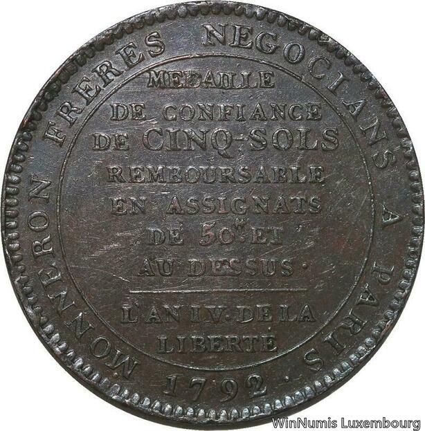 R6759 Constitution Monneron 5 Sols Serment an IV 1792 Birmingham -> Make offer