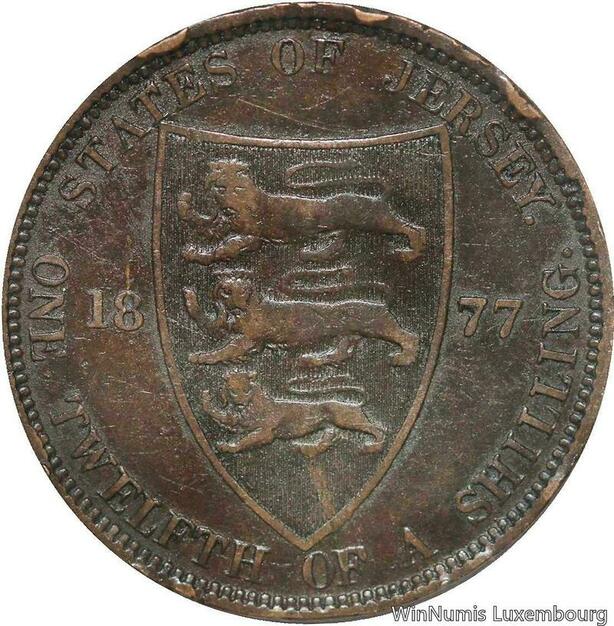R6873 Jersey 1/12 Shilling Victoria 1877 H Heaton -> Make offer