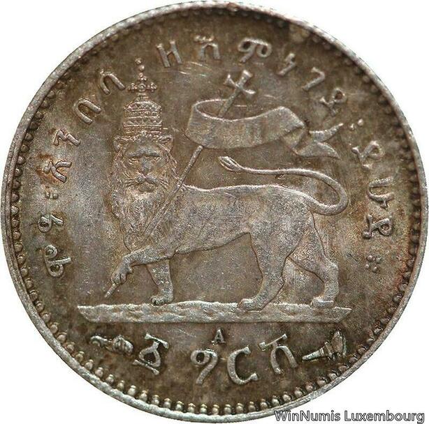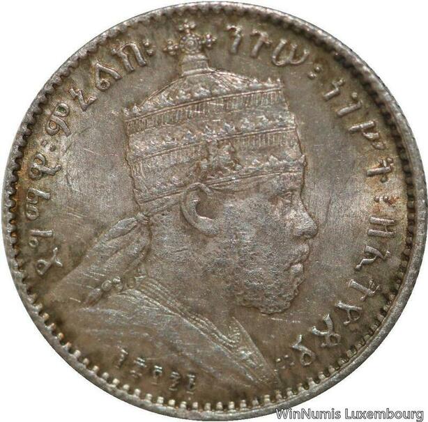 R6914 Ethiopia 1 Gersh Menelik II EE 1895 1903 A Paris Silver AU -> Make offer