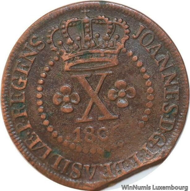 R6932 Very Rare Brazil 10 Reis Joao Prince Regent 1806 No Mint Lisboa ->M offer