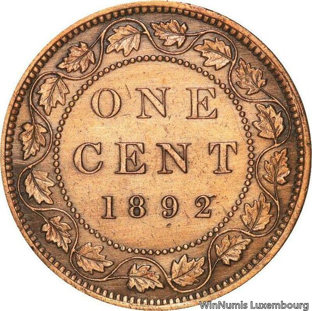 R6950 Rare Canada One Cent Victoria 1892 UNC Gem !! but Cleaned -> Make offer