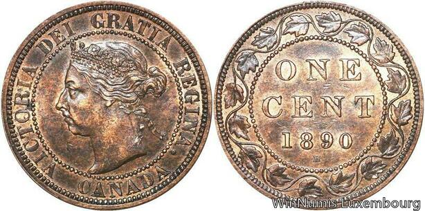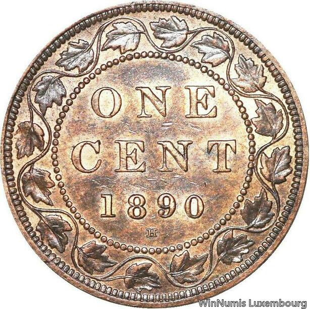 R6952 Rare Canada One Cent Victoria 1890 H Heaton AU -> Make offer