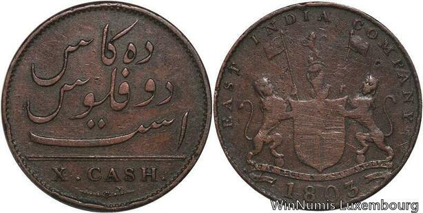 R6973 British India Madras Presidency 10 Cash 1803 -> Make offer