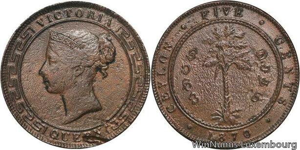 R6976 Sri Lanka Ceylon Old Counterfeit 5 Cents Victoria 1870 -> Make offer