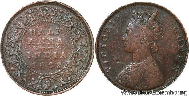R6977 British India 1/2 Anna Victoria 1862 -> Make offer