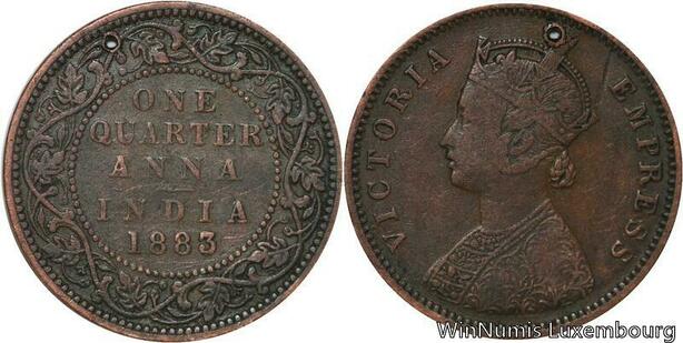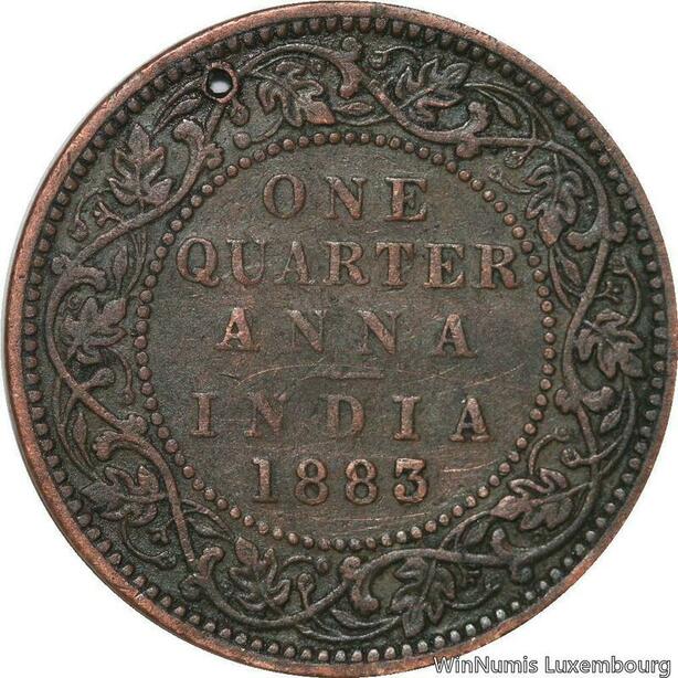 R6990 India One Quarter 1/4 Anna Victoria 1883 Calcutta -> Make offer