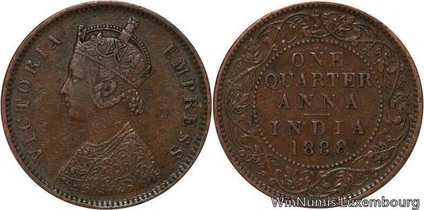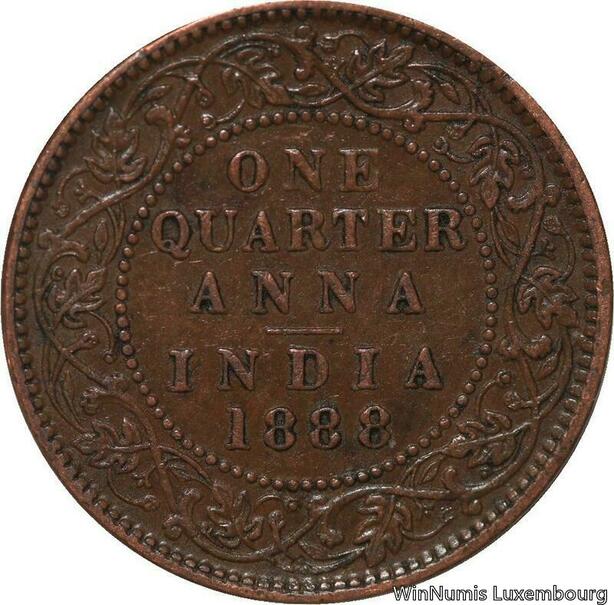 R6991 India One Quarter 1/4 Anna Victoria 1888 Calcutta -> Make offer