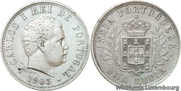 R7011 India Portuguese Uma Rupia Carlos I 1903 Silver -> Make offer