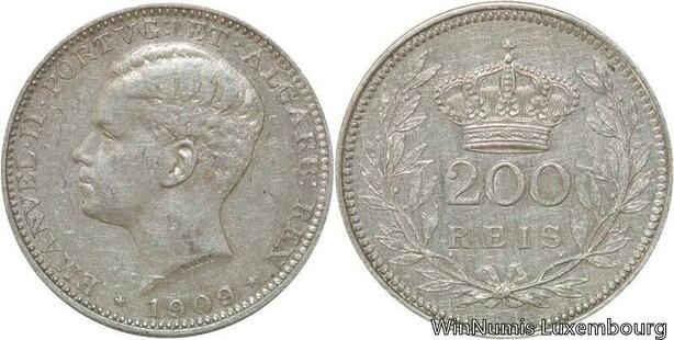 R7015 Portugal 200 Reis Manuel II 1909 Silver -> Make offer