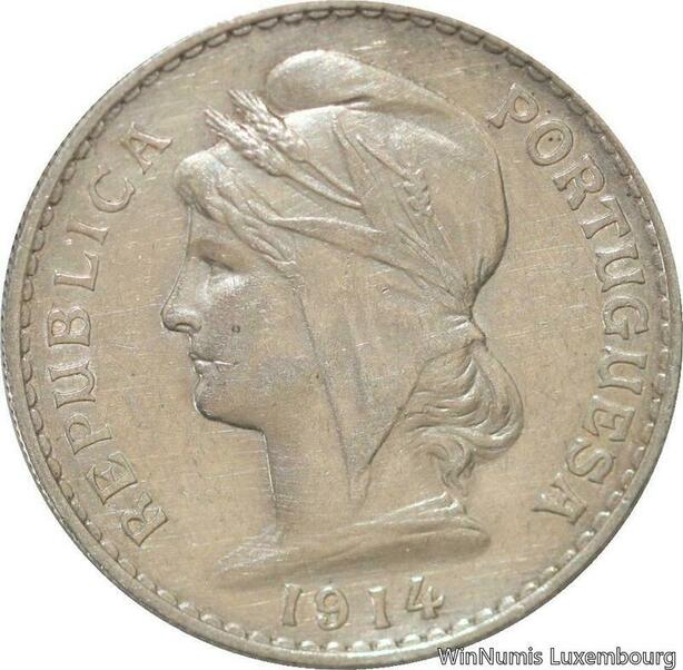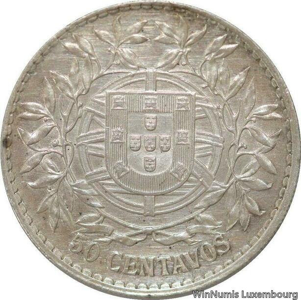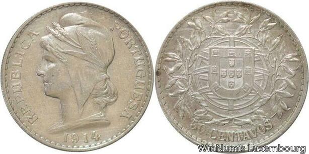R7016 Portugal 50 Centavos Liberty Head 1914 Silver AU -> Make offer