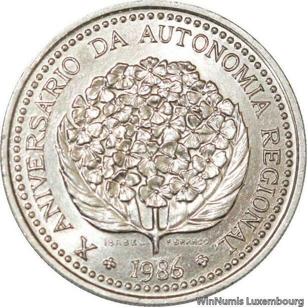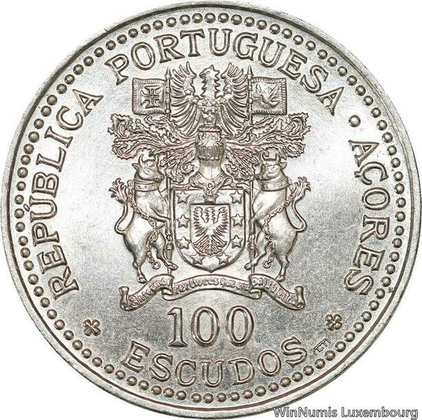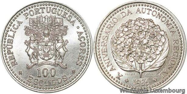 R7024 Portugal Azores 100 Escudos Regional Autonomy 1986 Silver UNC ->Make offer