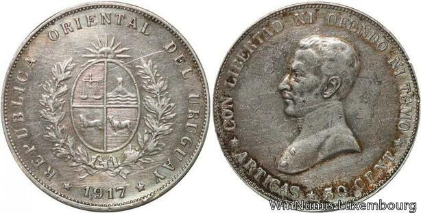 R7060 Uruguay 50 Centesimos 1917 Silver -> Make offer