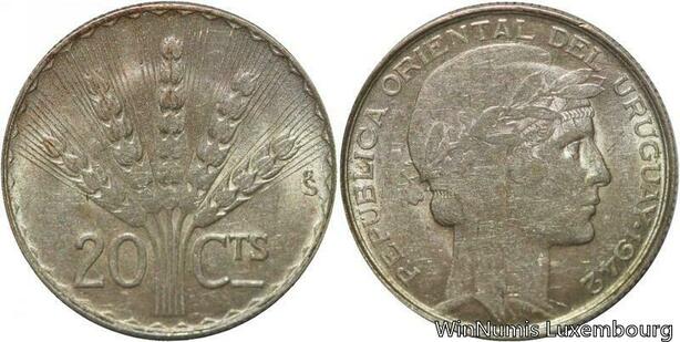 R7061 Uruguay 20 Centesimos 1945 So San Francisco Silver -> Make offer