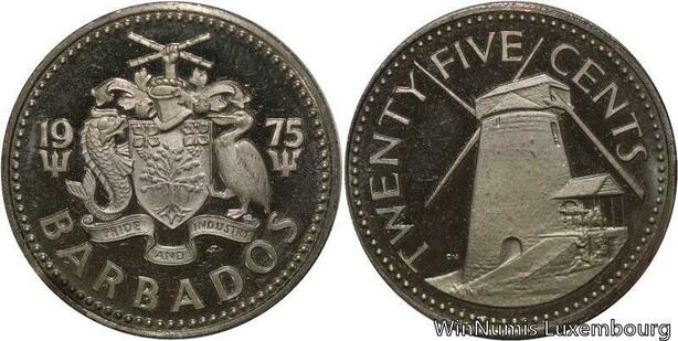 R7066 Barbados 25 Cents Morgan Lewis Windmill 1975 Proof -> Make offer
