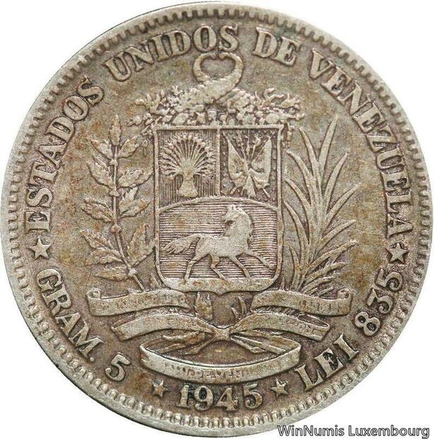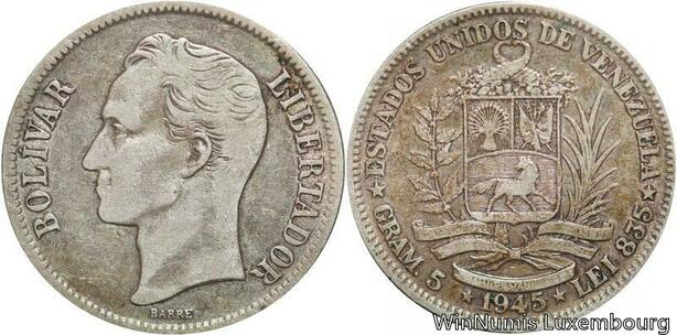 R7075 Venezuela Bolivar 1945 Barre Philadelphia Silver -> Make offer