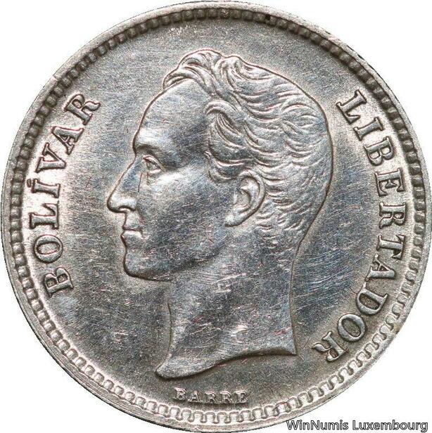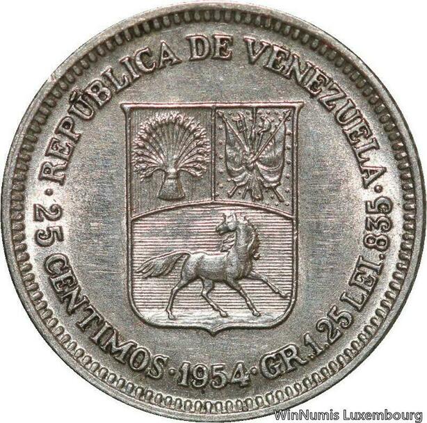 R7084 Venezuela 25 Centimos 1954 Silver AU -> Make offer