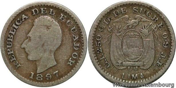 R7088 Ecuador 1/2 Decimo Sucre 1897 Lima Silver -> Make offer