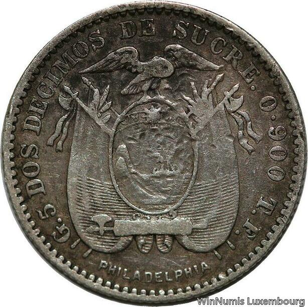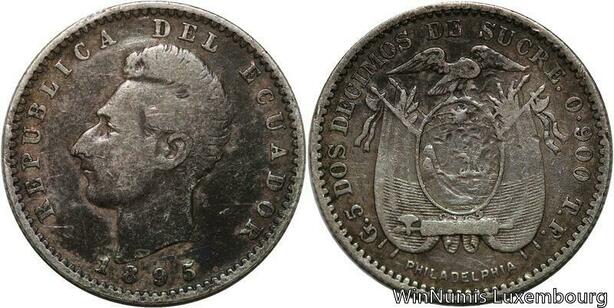 R7089 Ecuador 2 Decimos 1895 TF Philadelphia Silver -> Make offer