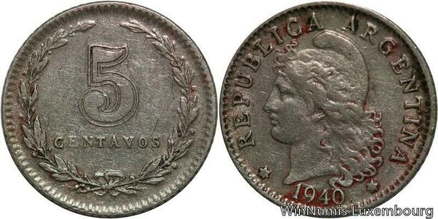R7093 Argentina 5 Centavos 1940 -> Make offer