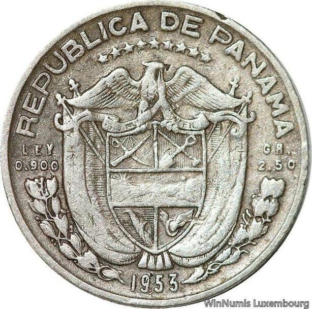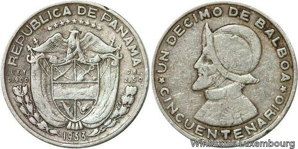 R7100 Panama Decimo 1/10 Balboa 1953 Silver -> Make offer