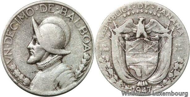 R7102 Panama Decimo 1/10 Balboa 1947 Silver -> Make offer