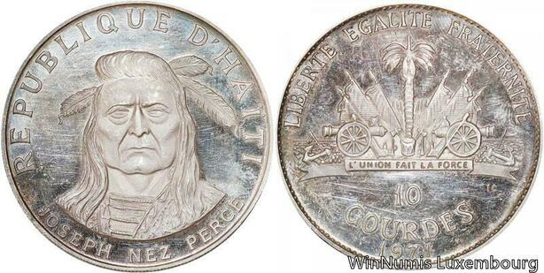 R7107 Rare Haiti 10 Gourdes Joseph Nez Perce 1971 IC Silver Proof -> Make offer