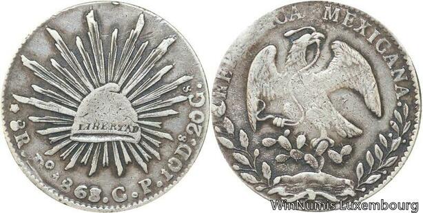 R7115 Mexico 8 Reales 1868 Do CP Silver -> Make offer