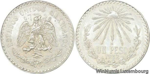 R7120 Mexico Peso 1932 Mo Opened 9 Silver AU -> Make offer