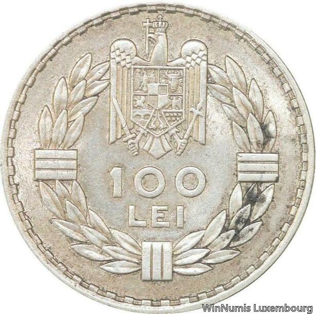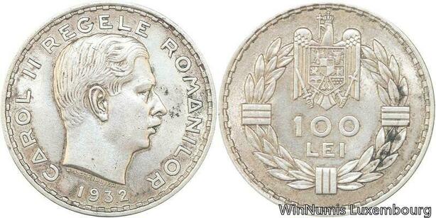 R7129 Rare Romania 100 Lei Carol II 1932 London Silver AU -> Make offer