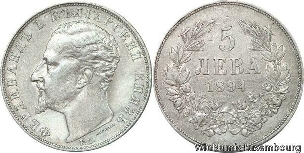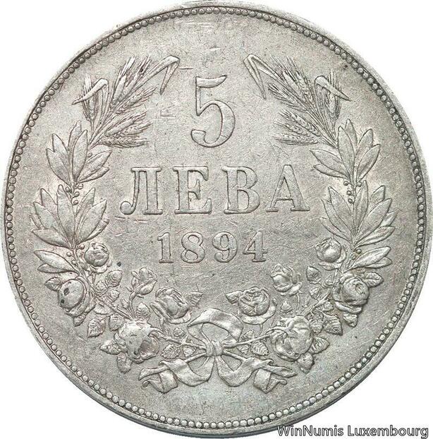 R7138 Rare Bulgaria 5 Leva Ferdinand I 1894 KB Kremnitz Silver -> Make offer