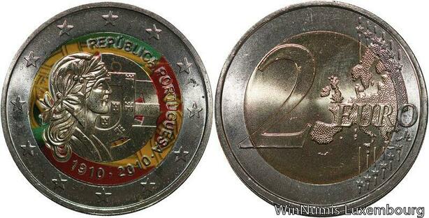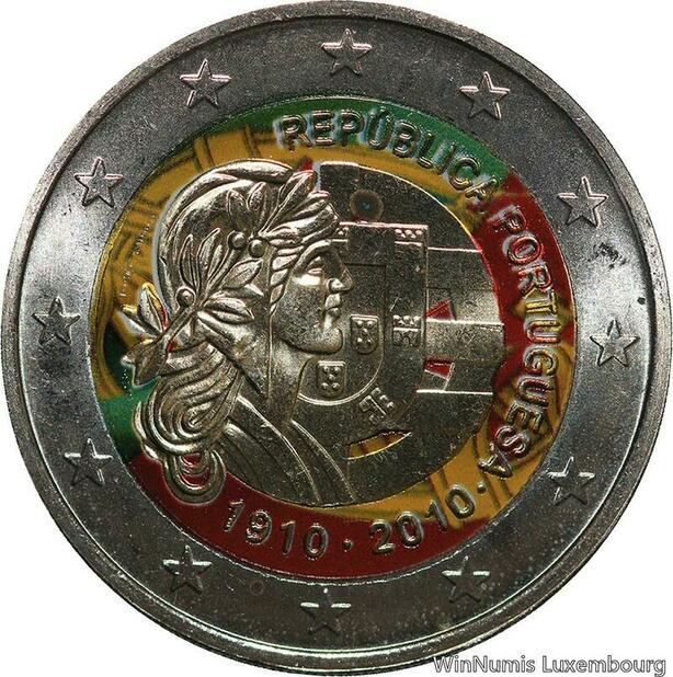 R7148 Portugal 2 Euros 100th Anniversary Republic 2010 Colorful UNC ->Make offer