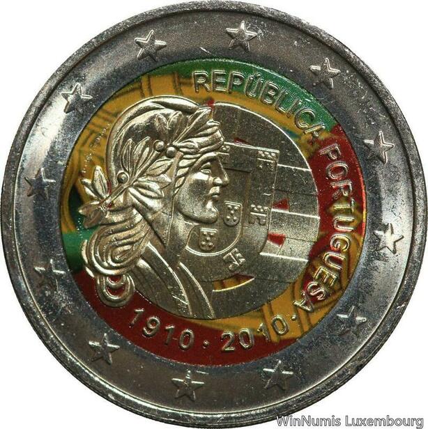 R7157 Portugal 2 Euros 100th Anniversary Republic 2010 Colorful UNC ->Make offer