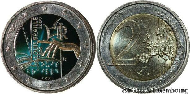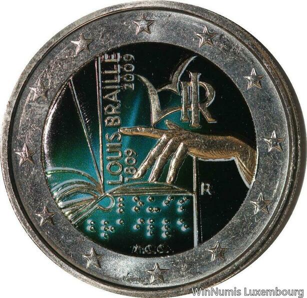 R7181 Italy 2 Euros 200th Birthday Louis Braille 2009 Colorful UNC -> Make offer