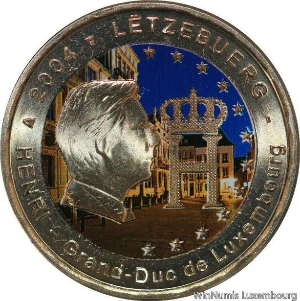 R7204 Luxembourg 2 Euros 80th Anniversary Monograms Coins 2004 Colorful UNC