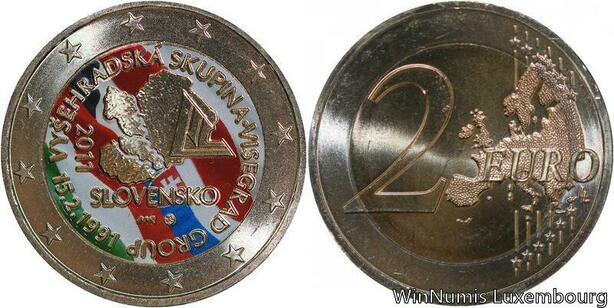 R7216 Slovakia 2 Euros 20 Years Visegrad CZ H PL Group 2011 Colorful UNC ->Offer