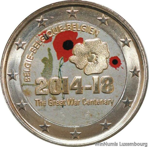 R7223 Belgium 2 Euros 100 Ans Grande Guerre 1914 2014 Colorful UNC -> Make offer