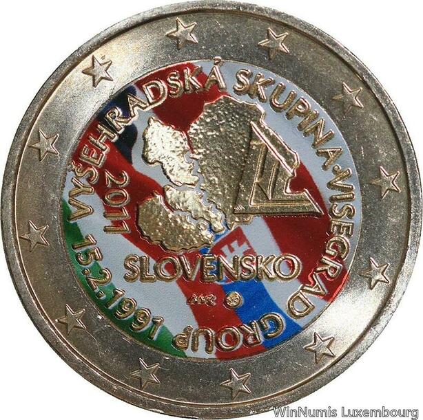 R7226 Slovakia 2 Euros 20 Years Visegrad CZ H PL Group 2011 Colorful UNC >Offer
