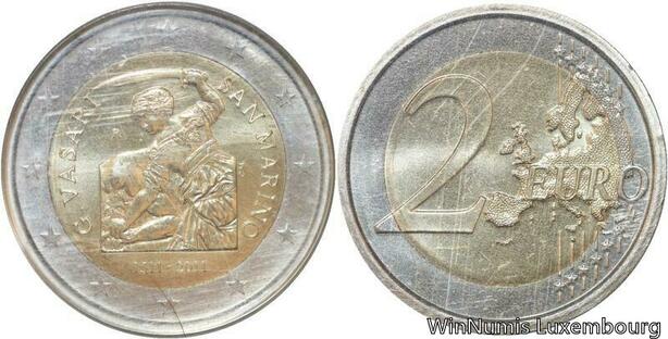 R7244 Set San Marino 2 Euros 500th Birthday Giorgio Vasari 2011 UNC ->Make offer