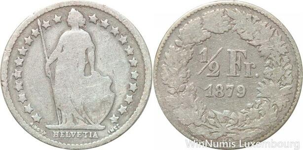 R7254 Switzerland 1/2 Franc Helvetia 1879 B Berne Silver -> Make offer
